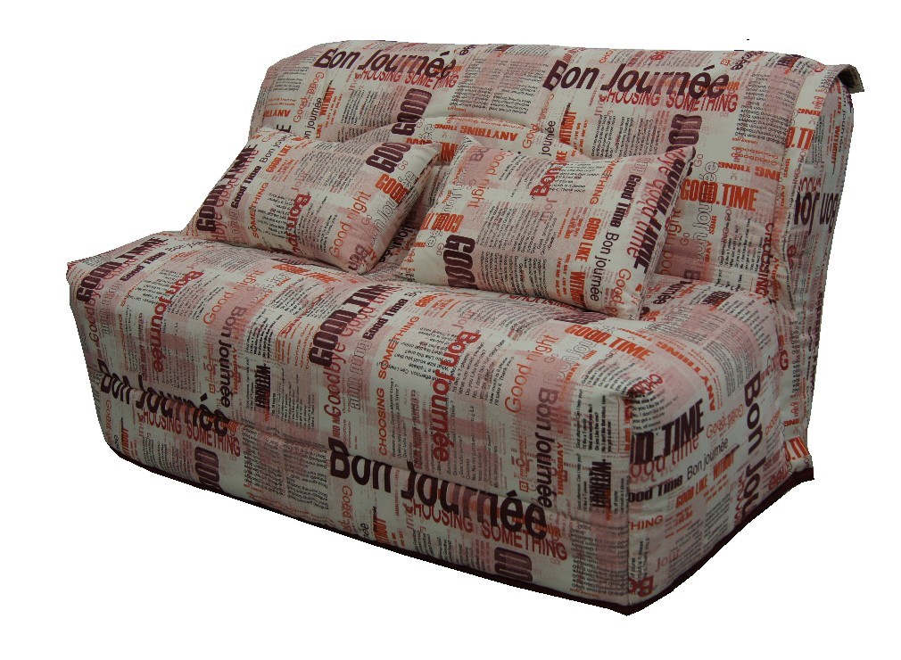 Banquette-Lit BZ avec Couchage en 140/195 cm, équipé d'une Housse amovible matelassée de 450 g/m², ouvrable et utilisable en couette de lit grâce aux fermetures à glissières. Vendu avec 2 coussins de 40x60 cm.