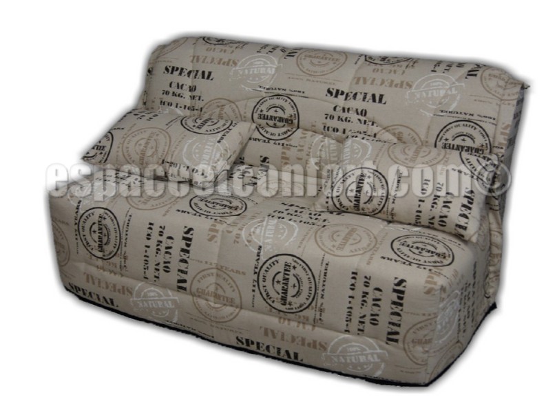 Banquette-Lit BZ avec Couchage en 140/195 cm, équipé d'une Housse amovible matelassée de 450 g/m², ouvrable et utilisable en couette de lit grâce aux fermetures à glissières. Vendu avec 2 coussins de 40x60 cm.