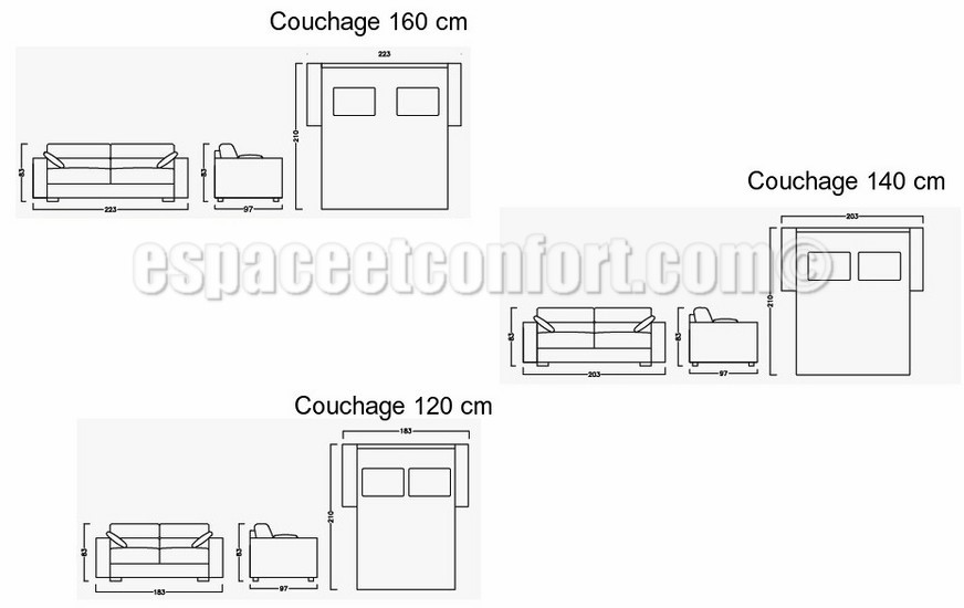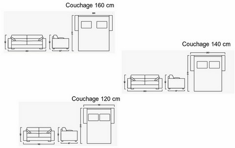 Ce canapé lit avec un couchage en 140 ou 160 x 198 cm, est livré avec un matelas 14 cm avec une densité de 35 kg/m3 double face réversible et Déhoussable. Ouverture du canapé par renversement dossier, le lit est déplié en quelques secondes...
