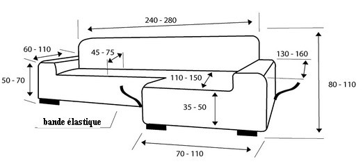 - Adaptable à tous les canapés avec accoudoirs de 240 à 280 cm de long