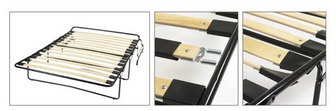 - Les lattes sont reliées au sommier par 2 petits ressorts de chaques cotès (soit 4 ressorts par lattes, vendu séparémment)