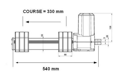 - Longueur de course = 330 mm (distance parcouru par le poussoir)