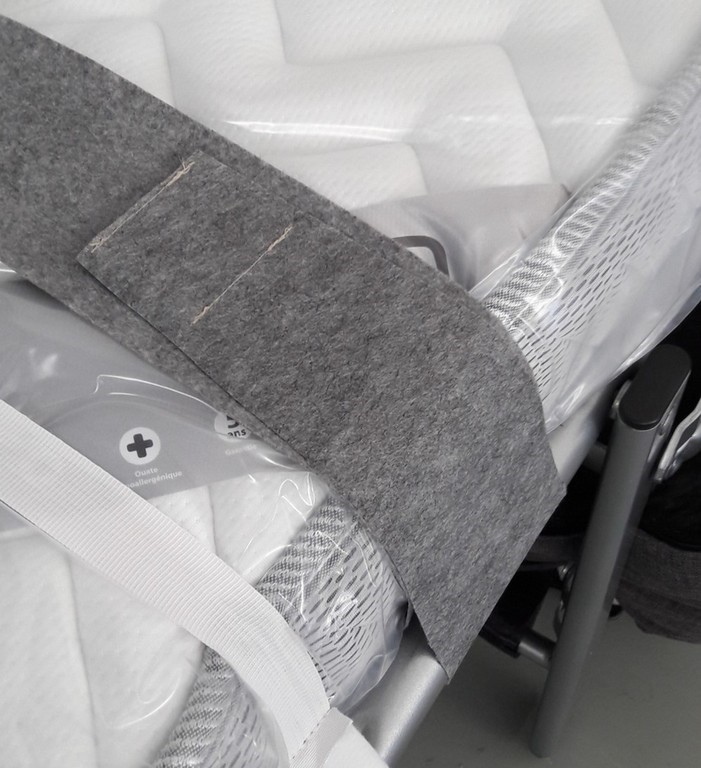 - La bande de tissu se scratch sur elle-même ce qui permet un réglage facile et ajusté au matelas.